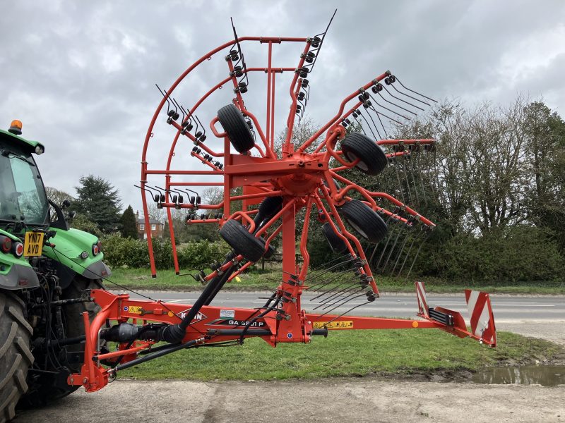 Used Kuhn GA6501P Twin Rotor Rake Year 2022 Working width from 5.5m – 6.5m Average swath width from 1.25m – 2m 3 point linkage mounted 3D bogie axle 2.65m rotor diameter, 10...